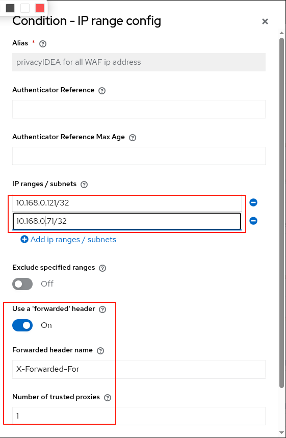 – 参数“Alias”填写“privacyIDEA for all WAF ip address”