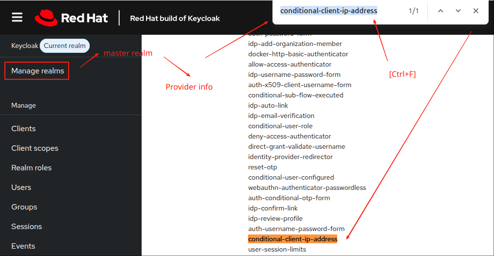 如果看到“authenticator”中包含“conditional-client-ip-address”即表示KeycloakIP地址验证器插件被正确加载