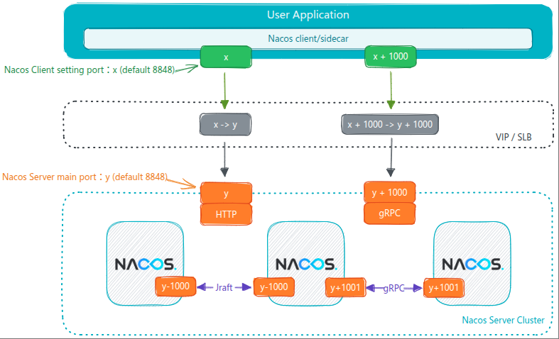 – Nacos Jraft请求服务端端口,端口“7848”,即主端口减“1000”,用于处理服务端间的Raft相关请求