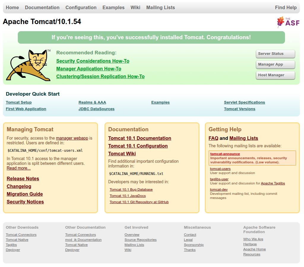 cd ~ tar -xf apache-tomcat-10.1.54.tar.gz mv apache-tomcat-10.1.54 /usr/tomcat/ chown root:tomcat -R /usr/tomcat/ chmod 770 -R /usr/tomcat/ mv /usr/tomcat/apache-tomcat-10.1.54/logs /var/log/tomcat ln -s /var/log/tomcat /usr/tomcat/apache-tomcat-10.1.54/logs chown root:tomcat -R /var/log/tomcat/ chmod 770 -R /var/log/tomcat/ mv /usr/tomcat/apache-tomcat-10.1.54/webapps /data/tomcat/ ln -s /data/tomcat/webapps /usr/tomcat/apache-tomcat-10.1.54/webapps