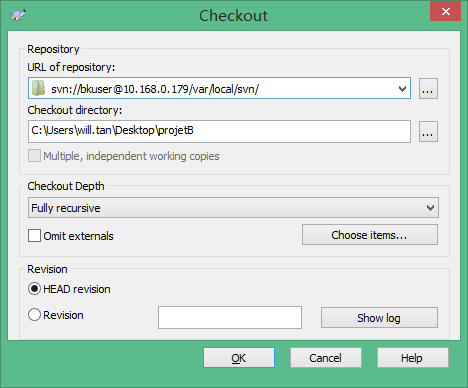 以上步骤会询问你svn的账号和密码,输入前面定义的用户名和密码: